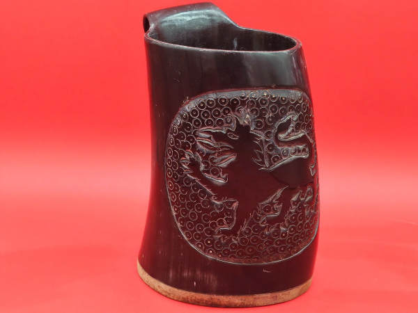 Carved Horn Tankard – East Kingdom Tiger Design