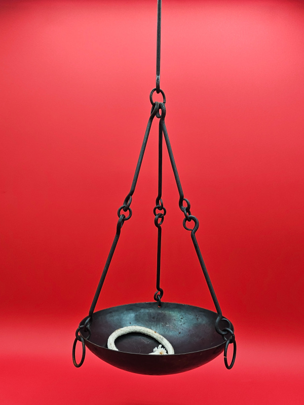 Our replica captures that same spirit, with a sturdy iron bowl suspended by a chain, ready to be hung in your home or camp. Ideal for historical reenactment, Viking living history, or as a striking piece of Norse-inspired décor, this lamp connects you directly to the craftsmanship of the Viking Age.