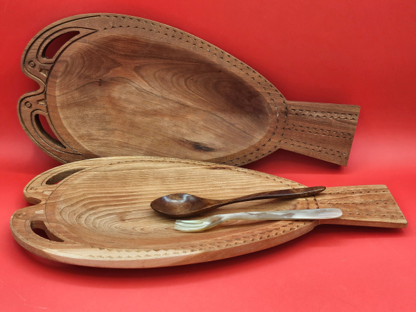 Each platter is carved and finished by hand, highlighting the natural grain and unique character of the wood. The edges are gently beveled or left slightly rough for a more rustic, historically accurate look. Whether used for feasts, reenactments, or everyday meals, it adds warmth and authenticity to any setting.